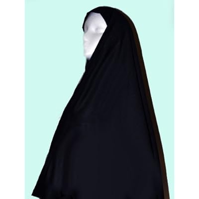 This black colored one piece Al Amira hijab, also called a khimar, is a very modest hijab that covers past the waist on most individuals. It is approx. 47 inches long at its longest point. It is easy to wear and covers the head, neck, and chest, making it the perfect choice for prayer, hajj, or other times you want more cover. The fabric is a high quality synthetic blend that has a silky feel, nice looking finish, and is machine washable/colorfast. This is a one size fits all khimar, and truly looks great on women of all sizes.