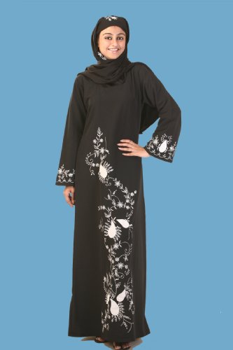 This Black Abaya is perfect for any occasion or as a gift. Made from 100% polyester fabric makes it comfortable to wear in any weather. ·100% wrinkle resistant poly-blend kasibo fabric (please allow 5% variance in color and/or embroidery) ·Machine stitched, white embroidered floral design ·Dry clean or machine wash cold with like colors, tumble dry no heat ·Rounded neckline ·100% wrinkle resistant poly-blend kasibo fabric (please allow 5% variance in color and/or embroidery) ·Dry clean or machine wash cold with like colors, tumble dry no heat