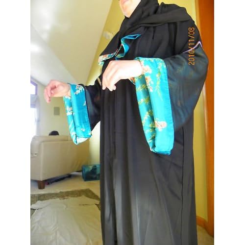 Size 50 Bust 40" Length 48" Traditional black abaya closes with snaps. beautiful Japanese style sleeves with diamond around the arm. Fabric is soft and comfortable soft polyester. Comes with oblong matching scarf This is a loose fitting and intended to be worn over clothing. Please check my store I have a lot of new abayas and thobes, perfumes and much more. my store