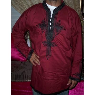 VINTAGE MOROCCAN MEN SHIRT BURGUNDY 2XLARGE Islamic Products Muslim Clothing